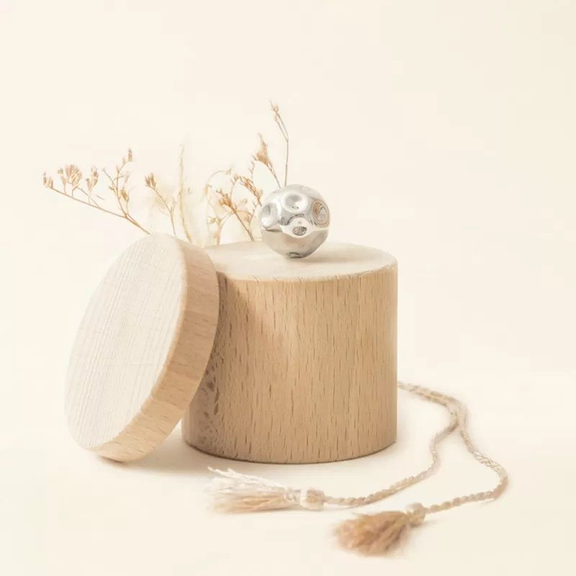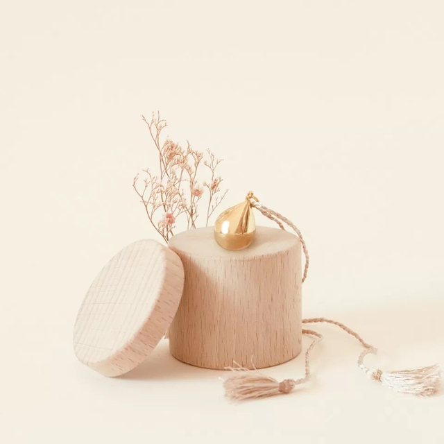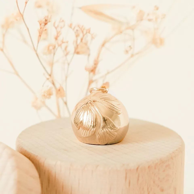 Ce Bola est delicatement enveloppe de feuilles de Ginkgo, l arbre sacre d Orient a la longevite exceptionnelle. Ses feuilles, presque en coeur, presque en eventail, symbolise la puissance de la nature et la force de la vie. Ce bijou plein de poesie, est un joli porte-bonheur a porter pendant la grossesse.