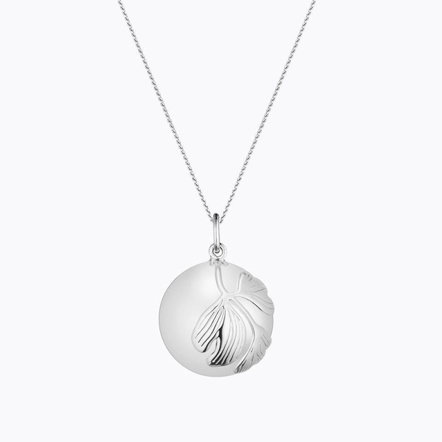 Ce Bola est delicatement enveloppe de feuilles de Ginkgo, l arbre sacre d Orient a la longevite exceptionnelle. Ses feuilles, presque en coeur, presque en eventail, symbolise la puissance de la nature et la force de la vie. Ce bijou plein de poesie, est un joli porte-bonheur a porter pendant la grossesse.