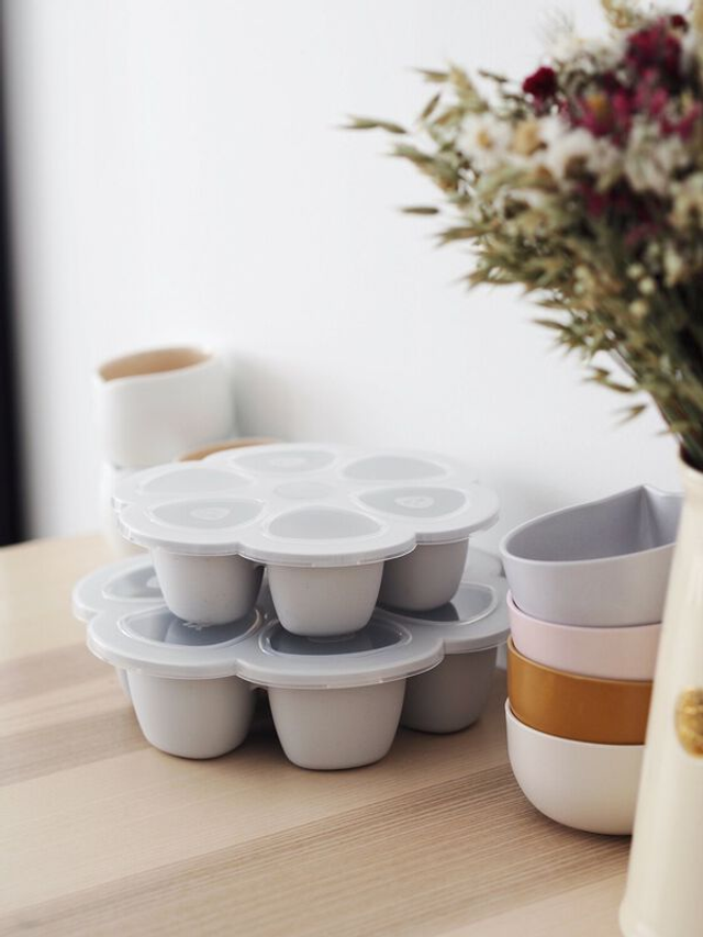 Permet de décongeler la quantité de nourriture adaptée en fonction de l’âge et de l’appétit de bébé
