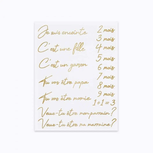 Annoncez votre grossesse à vos proches et gardez en souvenir chaque étape de votre grossesse avec ce kit de tatouages éphémères !